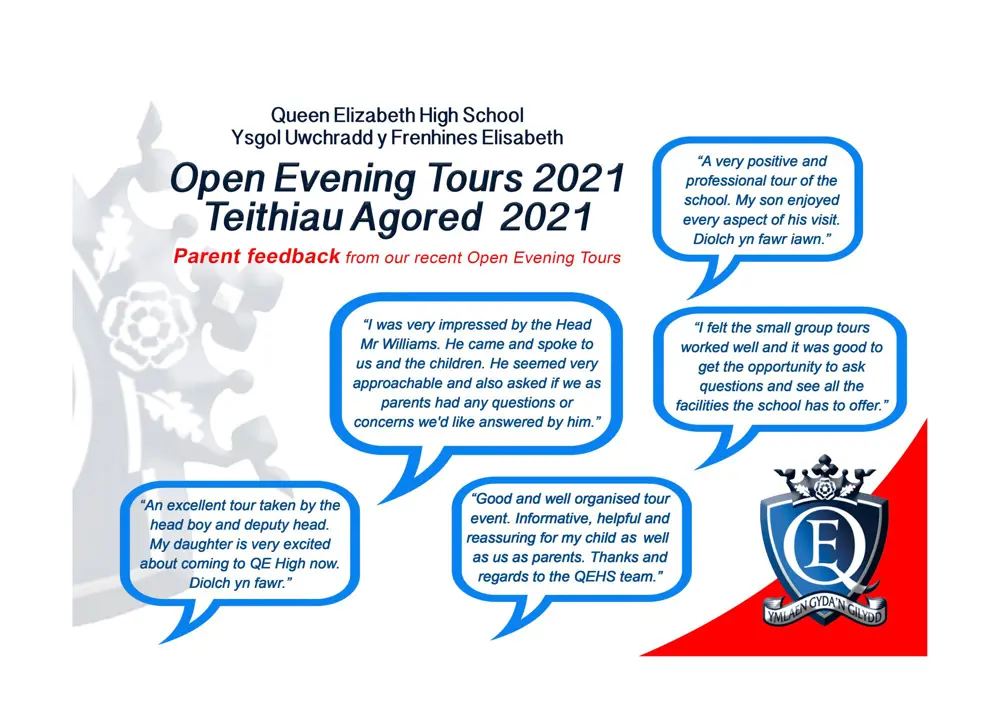 Dyma ychydig o adborth o'n teithiau o gwmpas yr ysgol ar gyfer digyblion, rieni a gofalwyr Blwyddyn 6.
